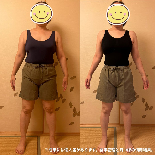 体重 55.0kg → 51.9kg − 3.1kg 体脂肪 32.4% → 27.9% − 4.5% ウエスト 69.5cm → 67.5cm − 2.0cm 学生のころから変わらなかった体重が30代になり3kg増えて、痩せれなくて...